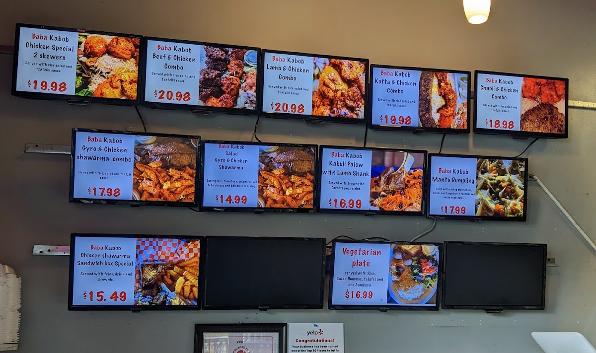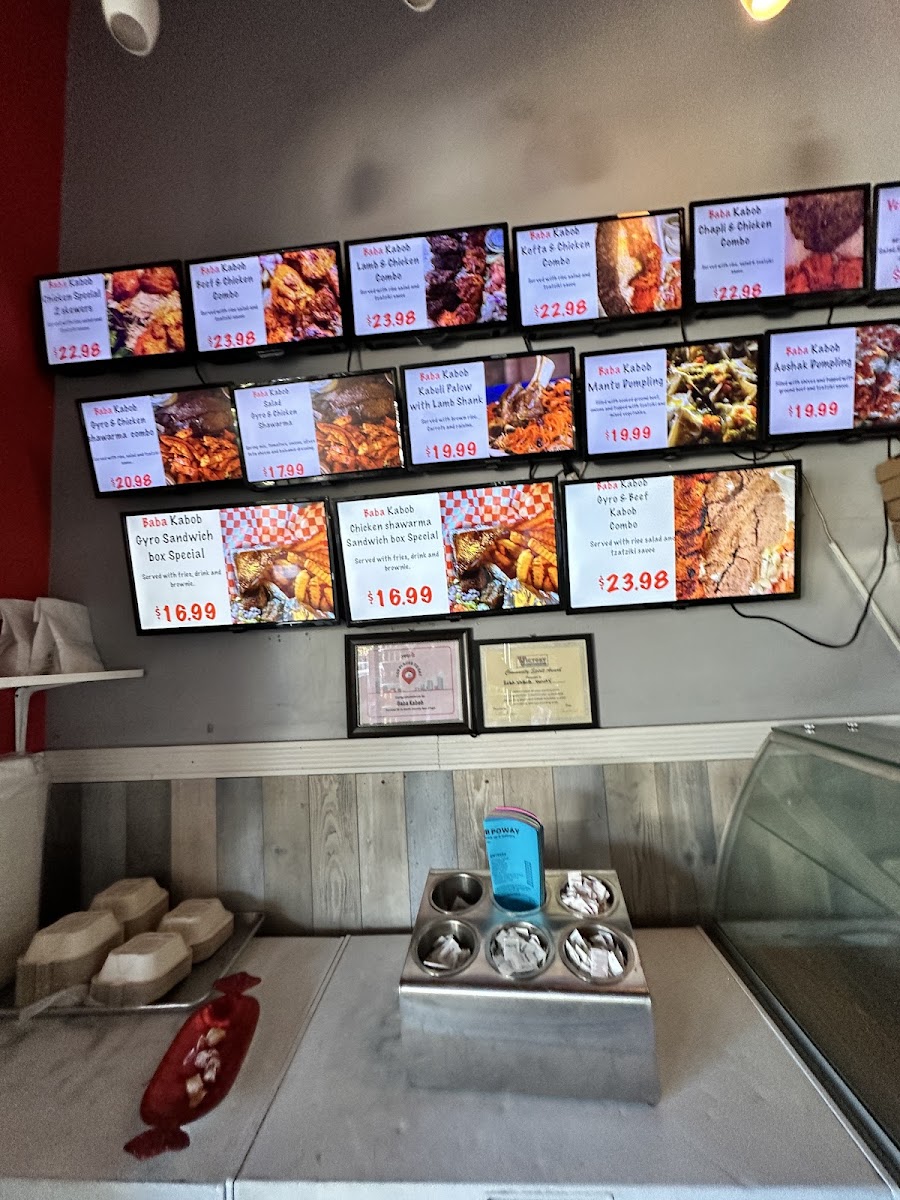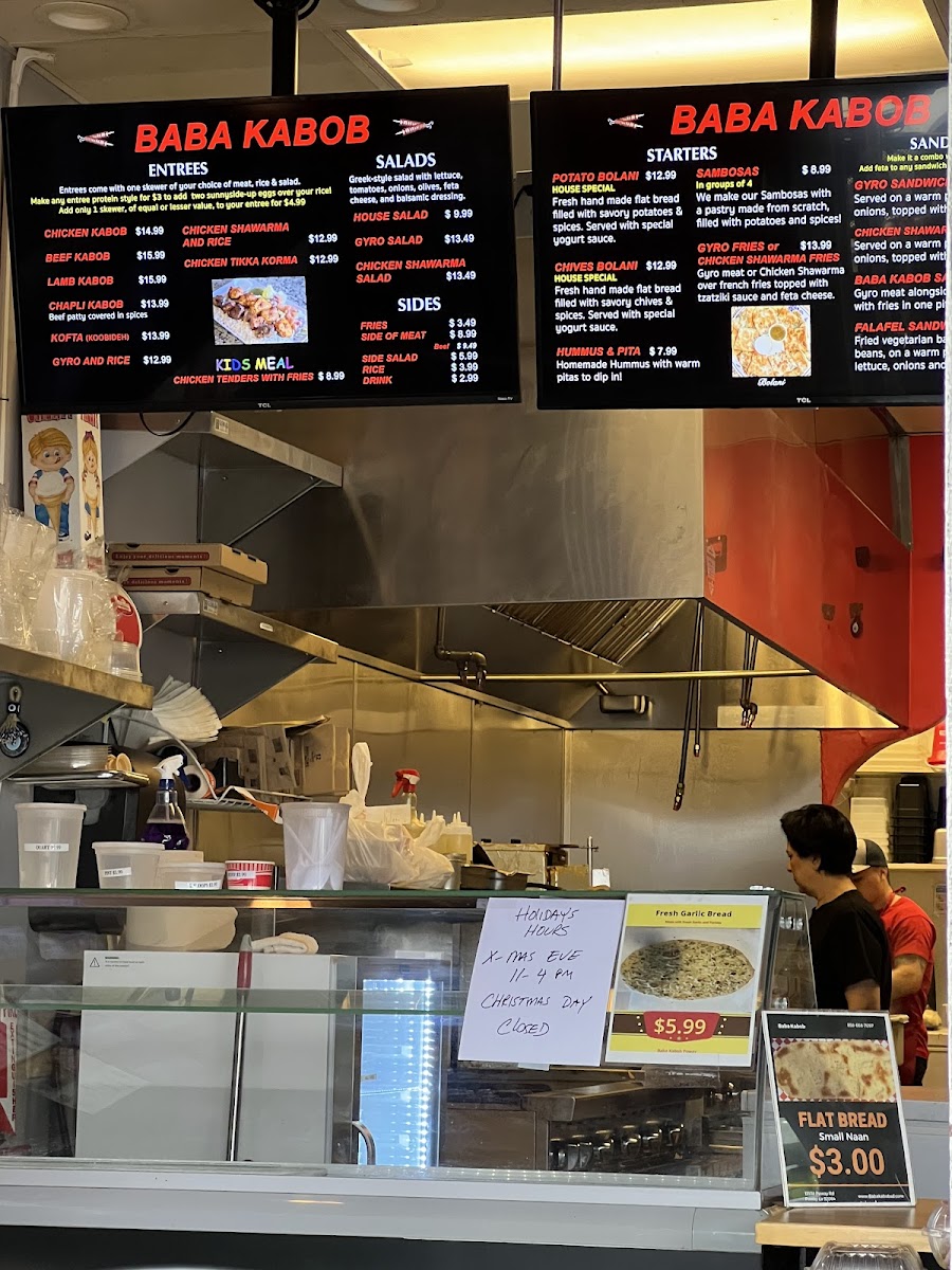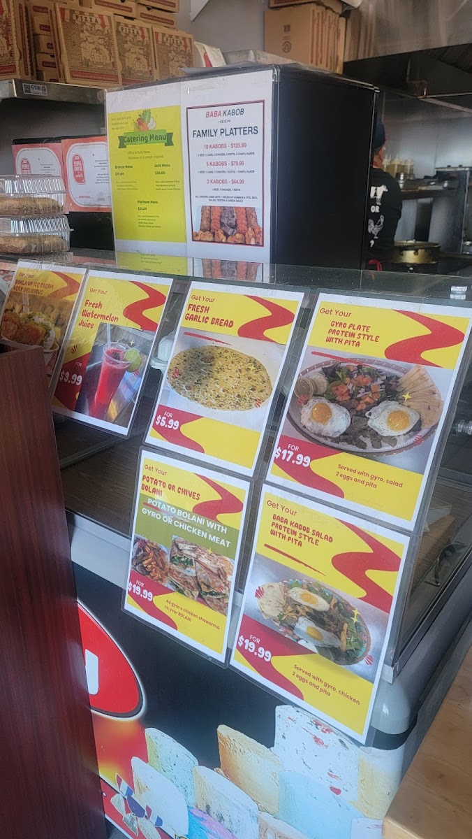 From a reviewer’s perspective, the menu at Baba Kabob Poway delivers a well-rounded snapshot of comfort food and Middle Eastern-inspired classics that feels both familiar and satisfying. The salad selection sets a fresh tone with options like the House Salad, Chicken Shawarma Salad, Gyro Salad, and even Flatbread (Small Naan) served alongside Garlic Sauce, making lighter choices flavorful rather than plain. Starters such as Sambosas, Garlic Bread, Gyro Fries, Hummus & Pita, and Chives (Gandana) Bolani are ideal for sharing and clearly designed to warm up the palate. The sandwich lineup-including the Baba Kabob Sandwich, Falafel Sandwich, Chicken Shawarma Sandwich, and Gyro Sandwich-offers dependable handheld options that showcase the restaurant’s core flavors. For heartier plates, entrees like CHEESE BURGER COMBO WITH FRIES & DRINK, Chicken Tikka Korma, Kofta (Kobideh) Gyro & Rice, and Aushak add variety, blending classic American comfort with traditional dishes. Sides such as Falafel Side, Rice (Side), Chicken Kabob (Meat Only), Hummus, and Chapli Kbob (Meat Only) allow diners to customize meals or build their own combinations. Finally, the inclusion of Thrifty Ice Cream flavors-Vanilla, Chocolate Brownie, Pistachios Nut, Cotton Candy, and Rocky Road-provides a nostalgic and sweet ending. Overall, the menu feels thoughtfully composed, offering something for casual diners, families, and anyone looking for a comforting, well-balanced meal.